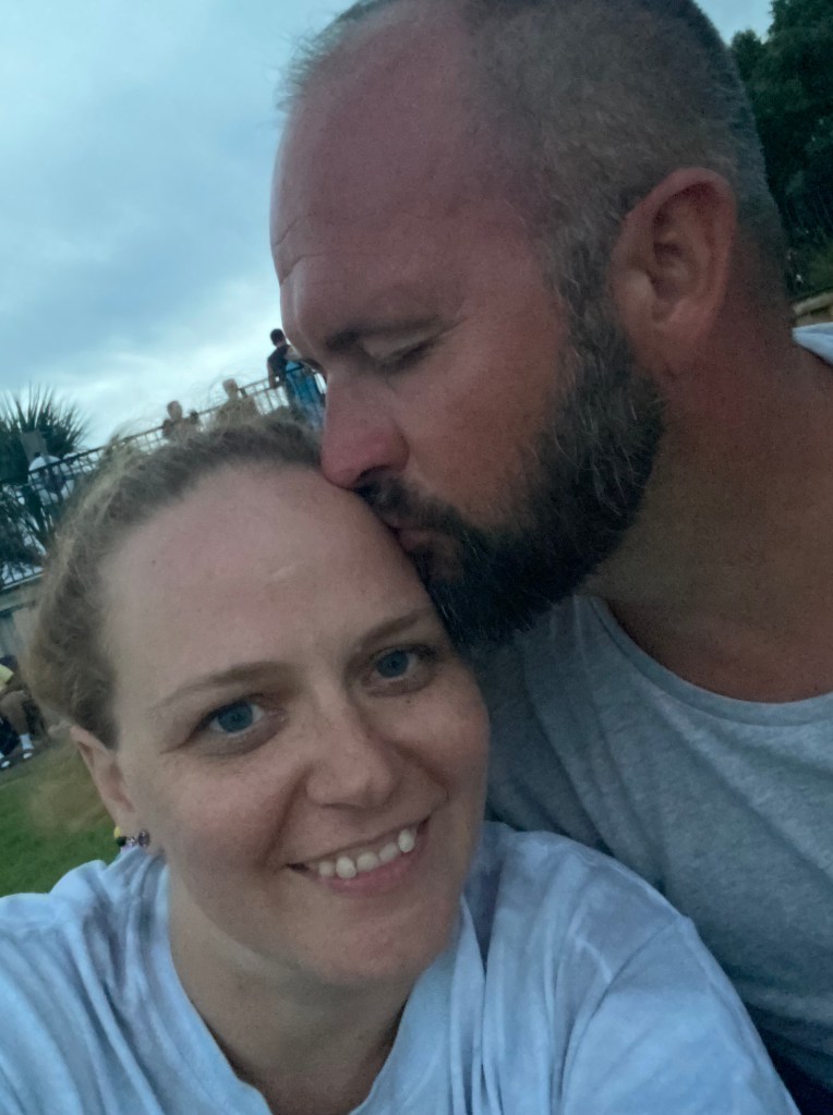 They walk me to the same office that they took me to to tell me I had cancer. And once again… my warrior husband awaits me and greets me with his magical forehead kiss!